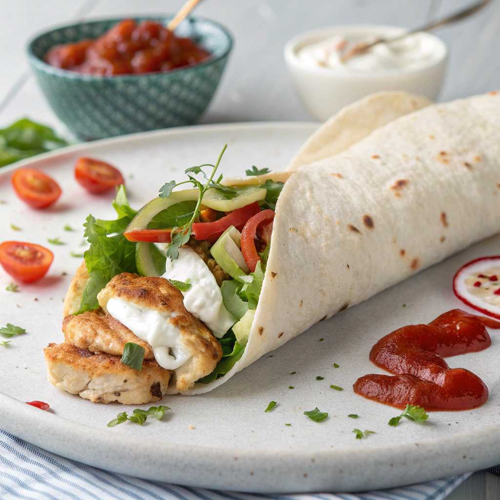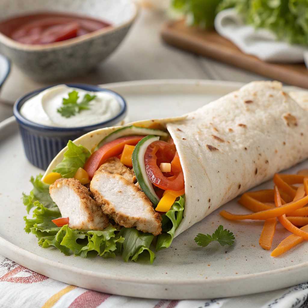 Roll + veggies / tortilla: ~200 kcal | 30 g carbs | 5 g fat | 6 g protein