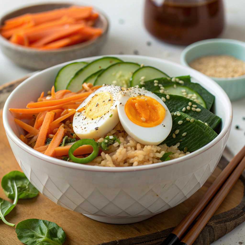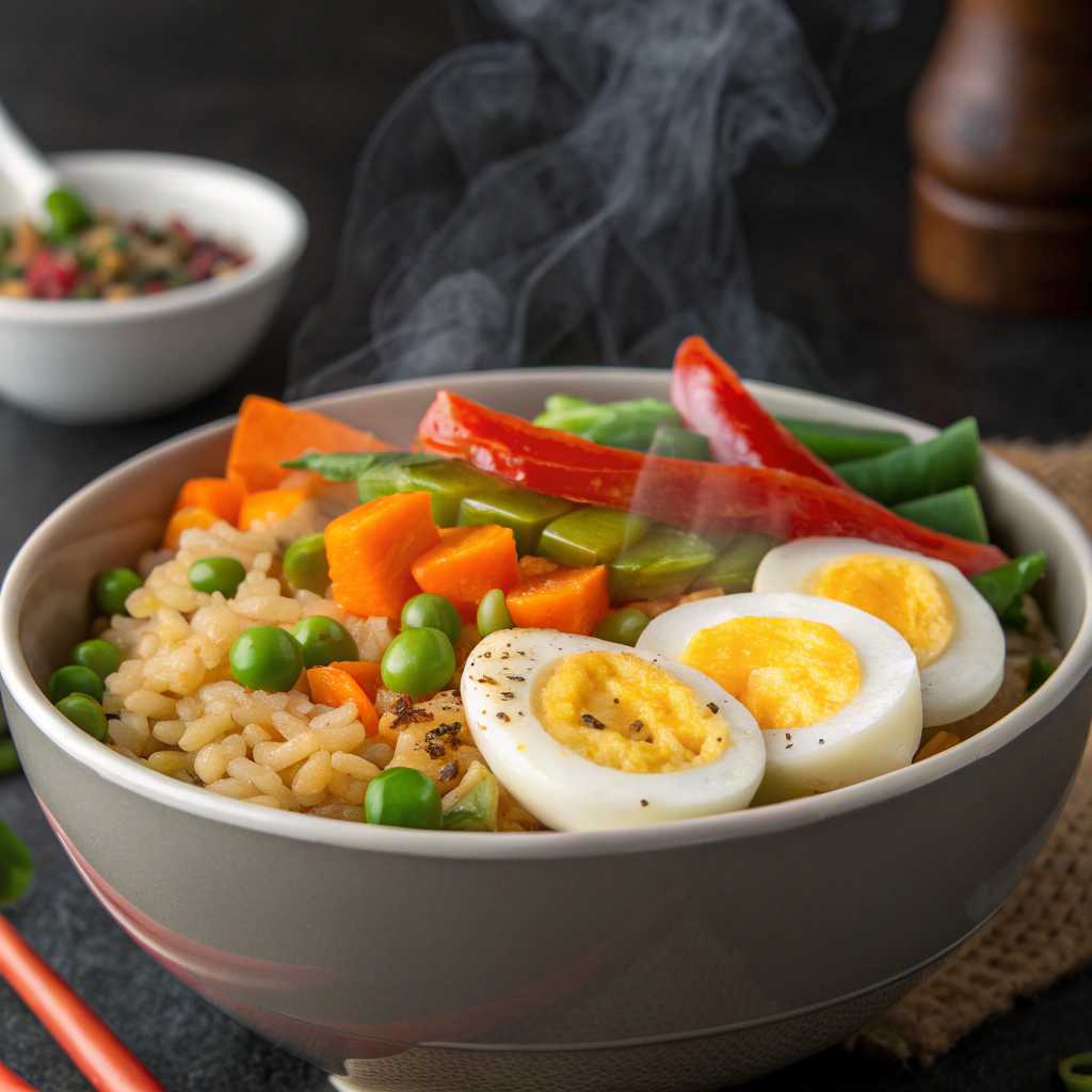 A comforting yet nutritious meal, this Egg Rice Bowl brings together protein-rich eggs and steamed rice, tossed with lightly sautéed vegetables for a wholesome, satisfying bite. Soft-scrambled or pan-tossed eggs add richness and high-quality protein, while rice provides steady energy to fuel your day.