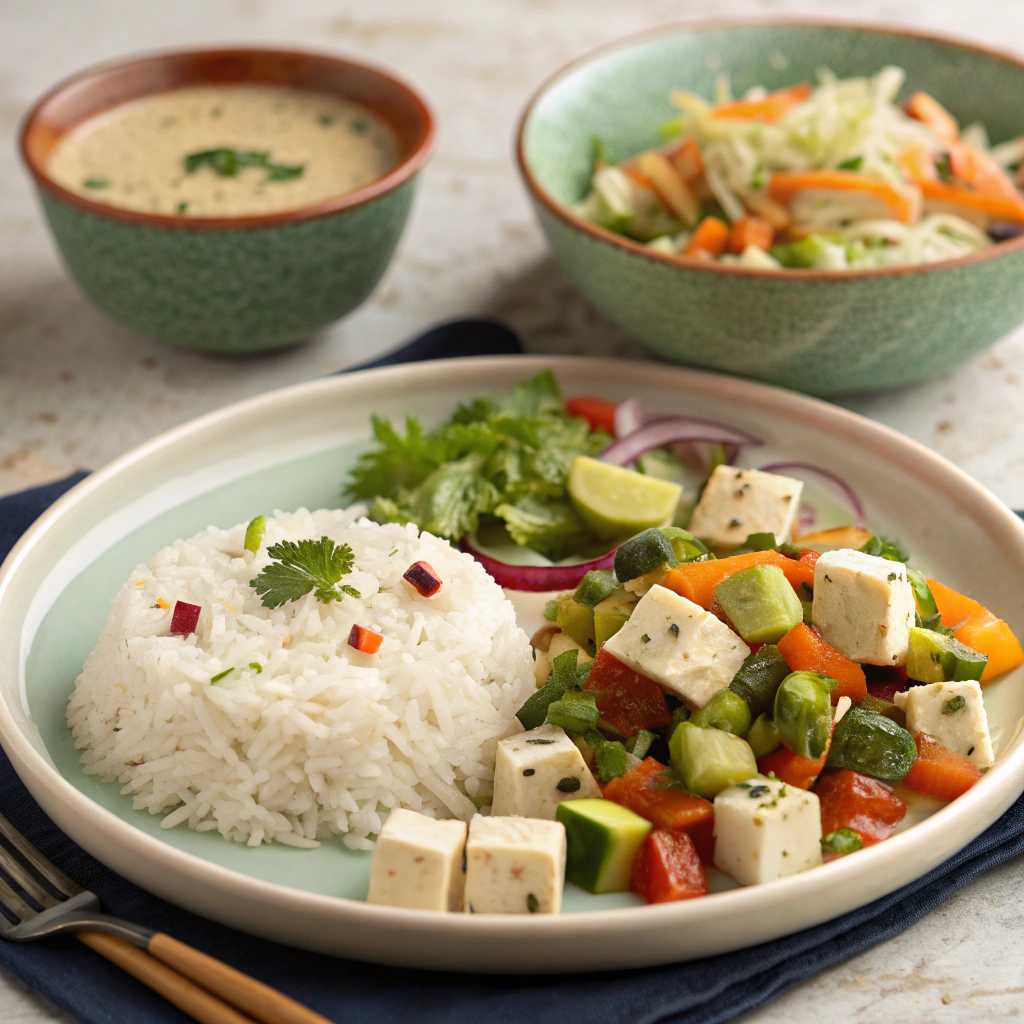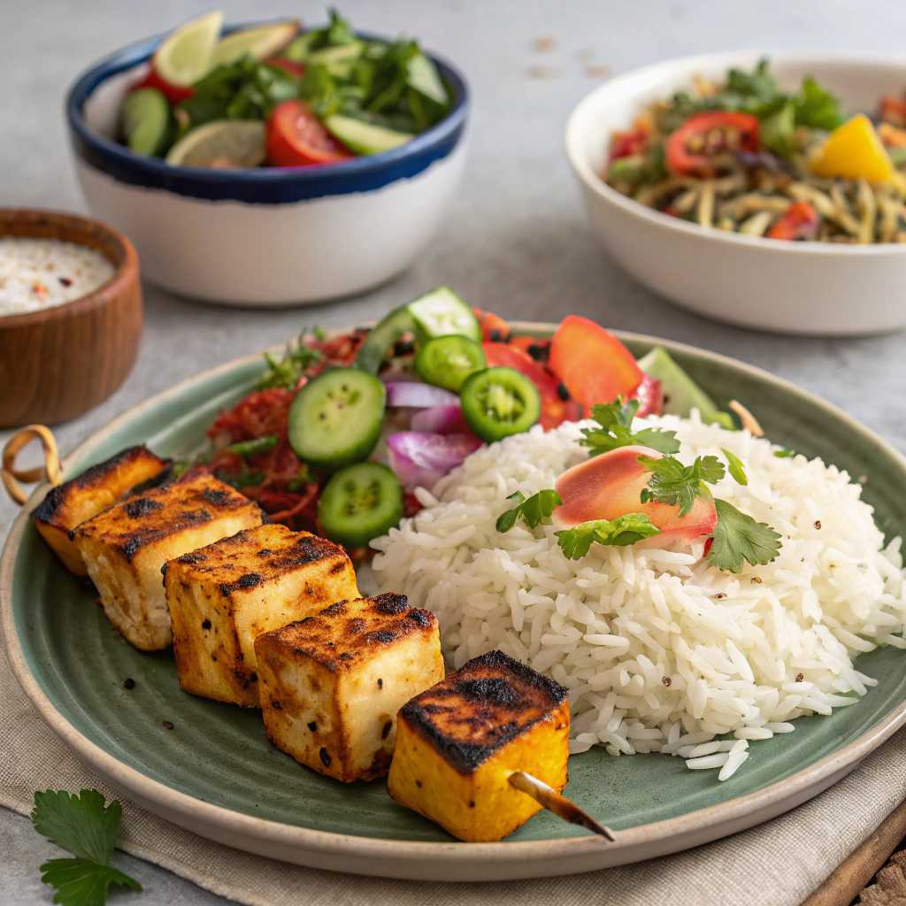 A wholesome and satisfying vegetarian platter, this Paneer Combo Meal combines 100 g of paneer salad, 180 g of steamed rice, and a generous serving of fresh mixed salad. The paneer provides rich, plant-based protein and healthy fats, while rice delivers steady energy. Crisp vegetables complete the meal with added fiber and micronutrients.